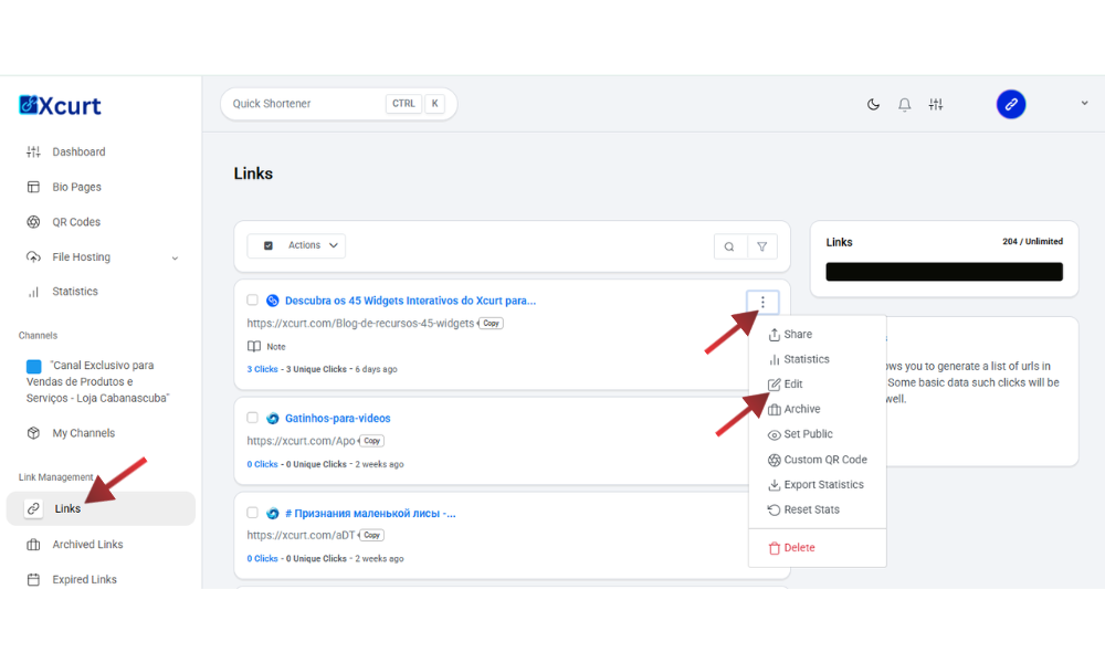 To add tags to a shortened and customized link in Xcurt, you’ll follow a process that generally involves editing the link’s properties after it has been created (or during creation, if the option is available in your plan).