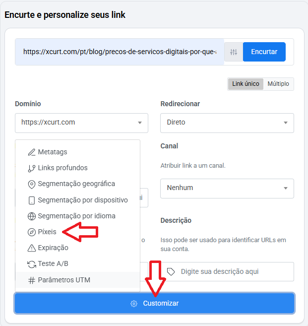 When shortening your link, open the Advanced Tools box, then go to Page Customization.