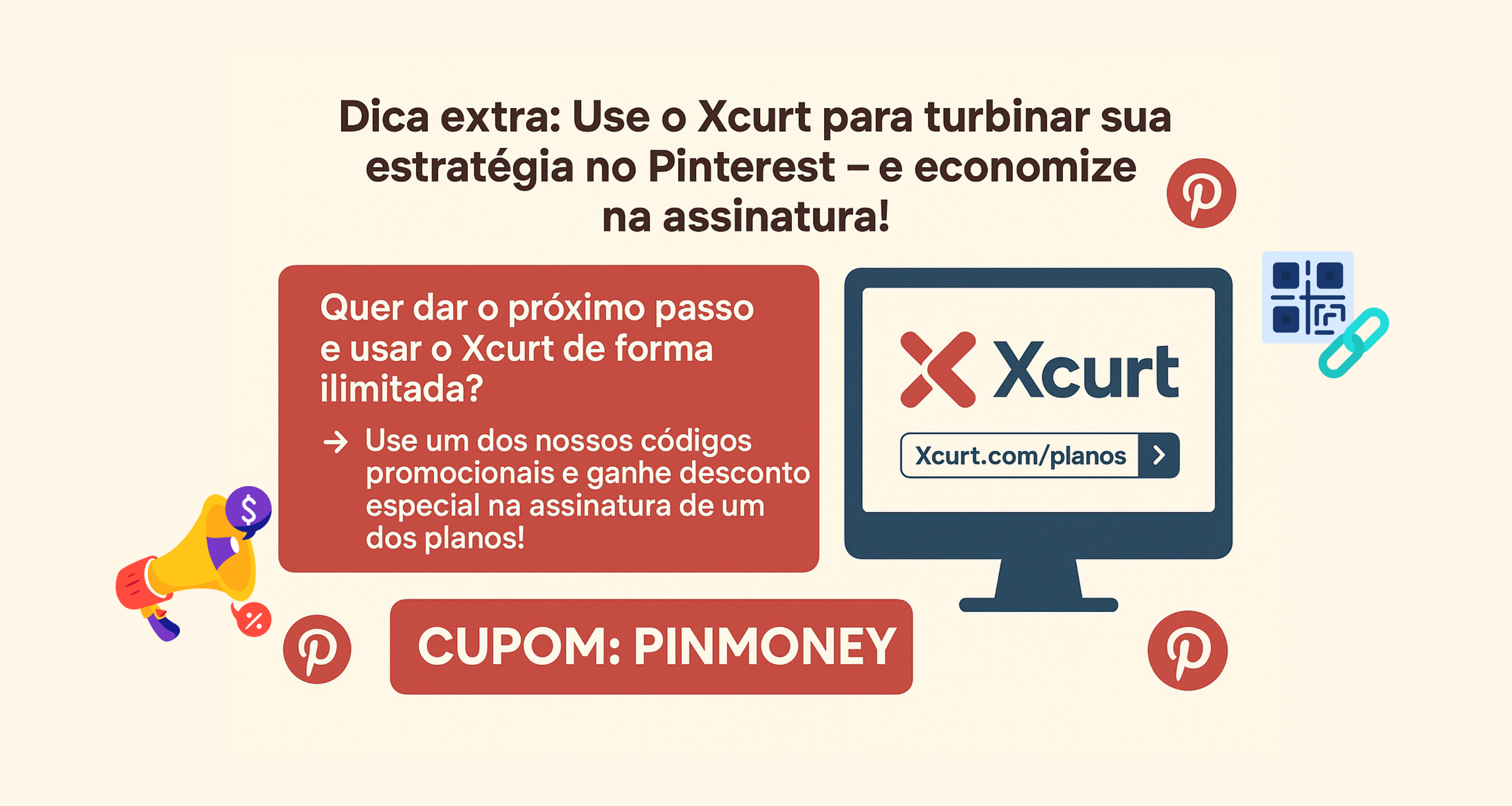 💡 2. Dica Extra: Use Xcurt para Turbinar sua Estratégia no Pinterest — e Economize na Assinatura!