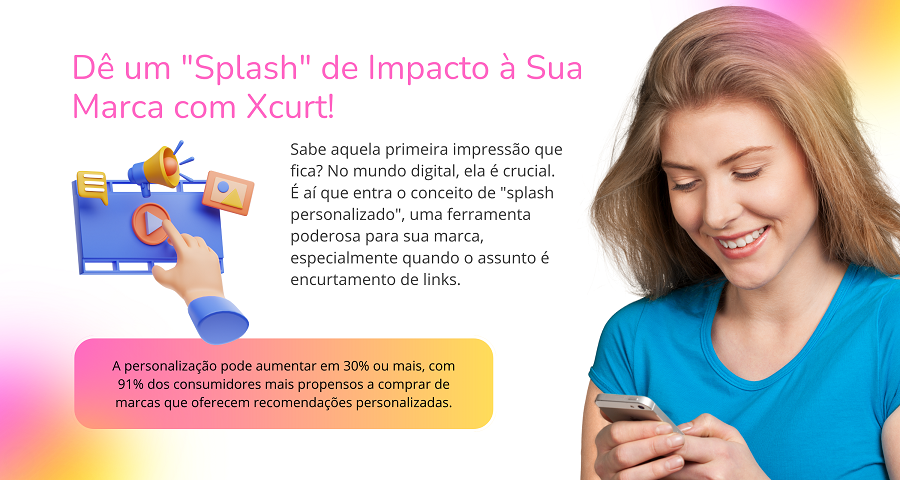 Ao contrário de outras ferramentas, no Xcurt, tudo isso já está integrado de forma nativa. Ao criar um link, você pode facilmente adicionar um splash personalizado, sem necessidade de contratar plataformas extras ou lidar com códigos complexos.