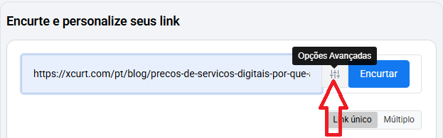 1. Ao encurtar seu link abra a caixa de ferramenta avançada em seguida em Customização da Página.